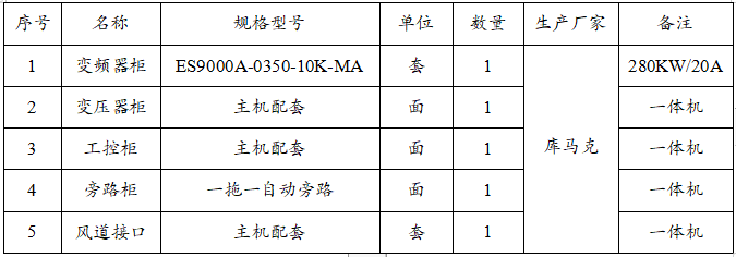 系統(tǒng)主回路主要配置設(shè)備: